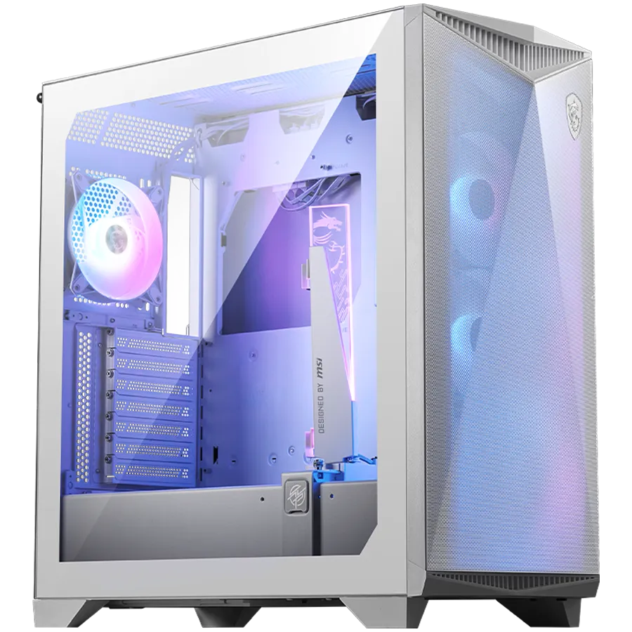 MSI MPG GUNGNIR 300R AIRFLOW WHITE, Mid-Tower, E-ATX/ATX/M-ATX/ITX, 2x USB 3.2 Gen 1 Type-A, 1x USB 3.2 Gen 2x2 Type-C, 1x Audio/1x Mic, LED Switch Button, ARGB Hub, 4x 120mm ARGB Fans, 1mm Perforated Front Panel, 3mm Tempered Glass - MPG_GUNGNIR_300R_AIRFLOW_WHITE