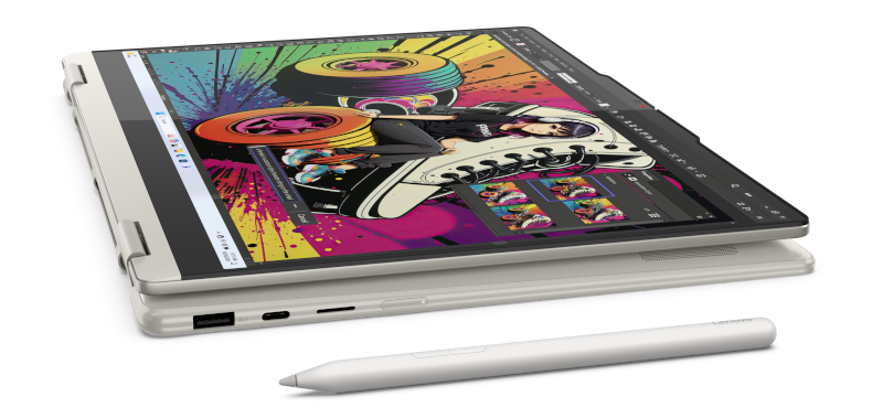 Изработени от метал с аерокосмическо качество и подчертани с отличителни дизайнерски елементи, конвертируемите лаптопи Yoga се въртят плавно, и стабилно на 360° при преминаването от режим на таблет към режим на лаптоп и обратно.