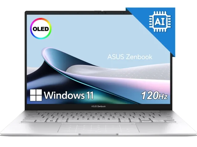 Asus Zenbook UX3405CA-ST787X, Intel Ultra 9 285H 2.9 GHz (24MB Cache, up to 5.4 GHz, 16 cores, 16 Threads), 14.0 OLED WQXGA+(WQ+) 2880X1800 16:10 Bend+500nits Glare, 120 Hz, LPDDR5X 32GB ( on board ),1TB SSD G4, Windows 11 Pro,Foggy Silver - 90NB14W2-M01M20