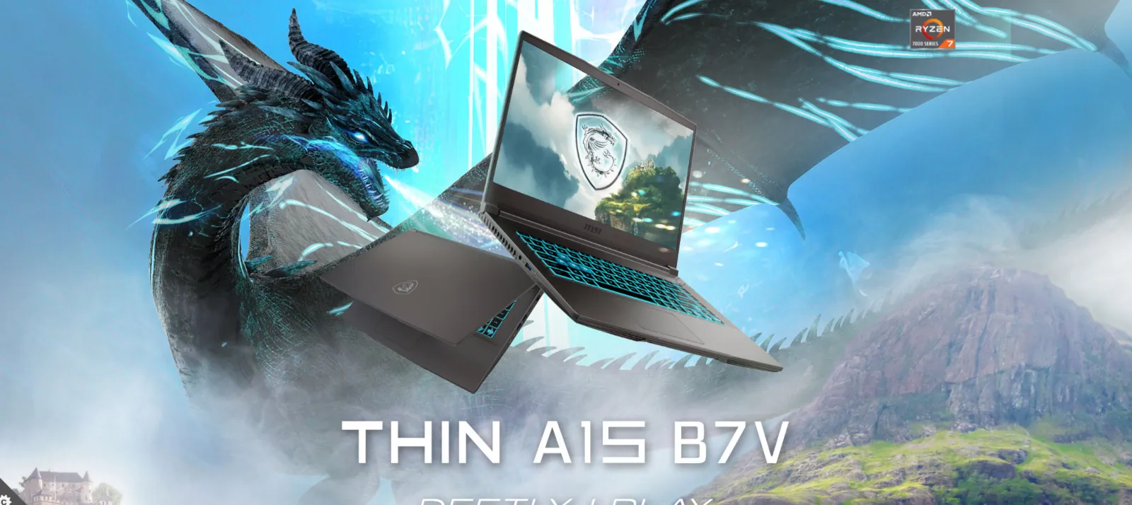 MSI Thin A15 B7VF, Ryzen 7 7735HS (8C/16T, up to 4.75GHz, 16MB L3), GeForce RTX 4060 8GB GDDR6 233 AI TOPS, 15.6"FHD (1920x1080), 144Hz, IPS-Level, 16GB 2x8 (4800)MHz, 512GB PCIe Gen4x4 SSD, WiFi 6E, BT5.3, Backlit Kbd (Blue), NO OS, 52.4 Whrs, 1.86 kg - 9S7-16RK11-448