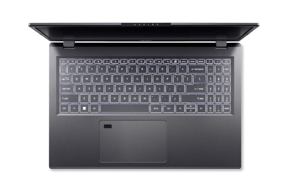 Лаптоп Acer Aspire A15-61M-R7W7, AMD Ryzen 7 8840HS (up to 5.10GHz, 16MB), 15.6"FHD IPS SlimBezel, 16GB DDR5 (2x8GB), 512GB PCIe NVMe SSD, AMD Radeon 780M, Wifi 802.11AX, BT, FP, FHD Cam, KB Backlight, No OS, Steel Gray - NX.JDHEX.003
