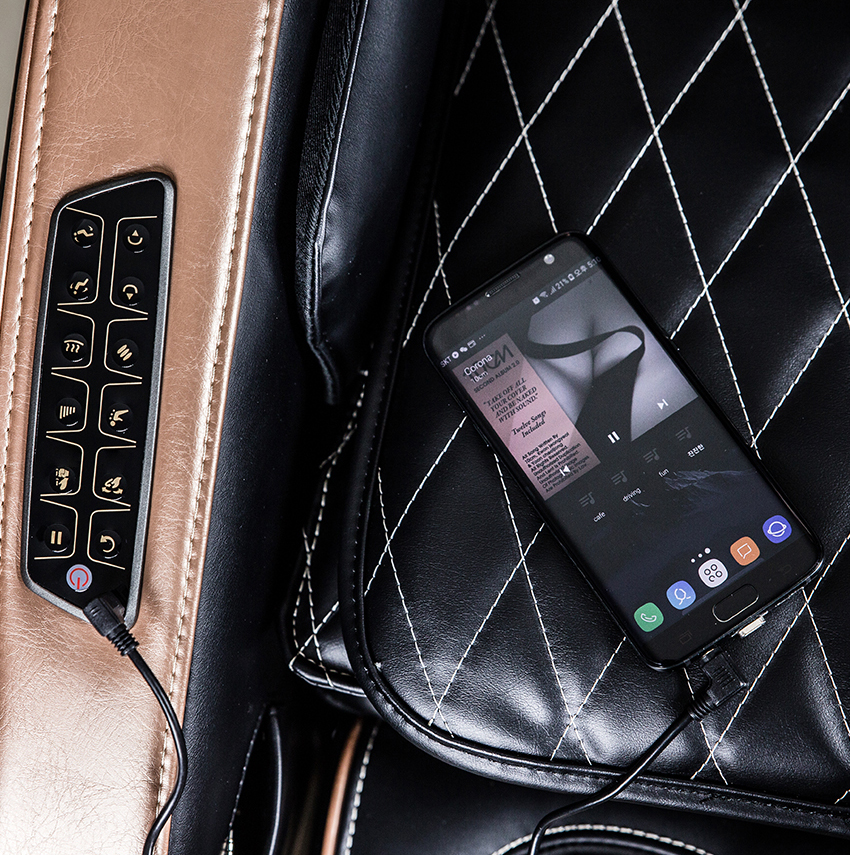 Bluethoot функцията на масажния стол Ви позволява да пуснете любимата си музика чрез вградените колонки и да се насладите на още по-релаксиращ и успокояващ масаж.