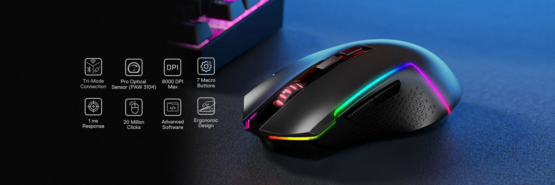 Геймърска безжична мишка Redragon Trident M693 с RPG осветление