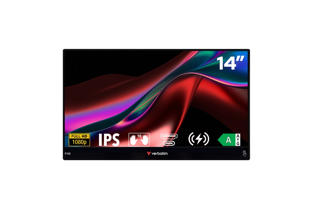Verbatim Portable 14"FHD Touch Monitor LIGHT with Wireless Power Supply incl. Power Bank 5000mAh - 32088