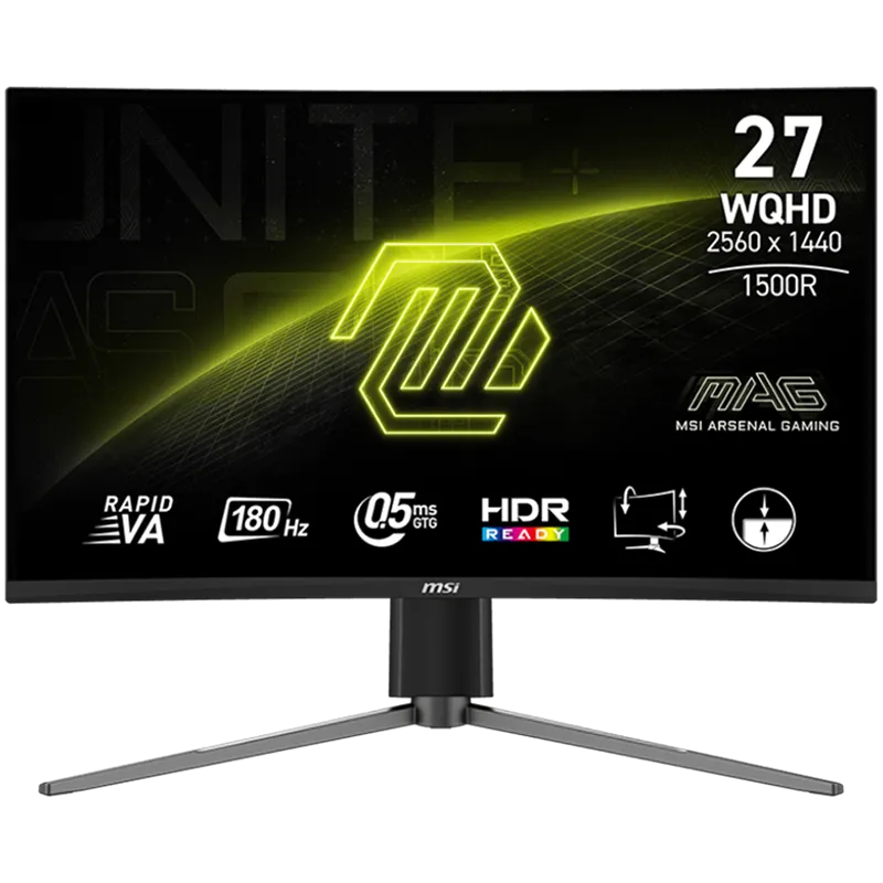 MSI MAG 27CQ6PF Curved Gaming Monitor, 27" 180Hz, WQHD (2560x1440) 16:9, Rapid VA Anti-glare, 1500R Curve, 0.5ms, 300nits, 5000:1, 178/178, AMD FreeSync, HDR Ready, Adjustable Stand, 1x DP, 2x HDMI, 3Y Warranty - MAG_27CQ6PF