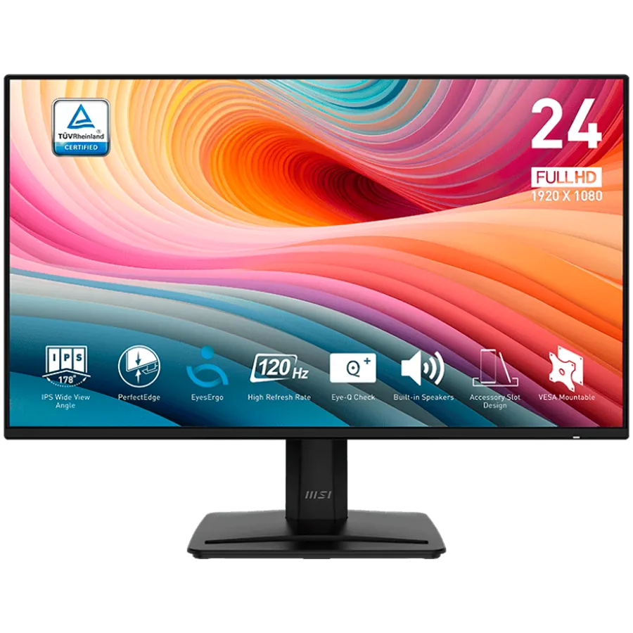 MSI PRO MP242A E2 Professional Business Monitor, 23.8" 120Hz, FHD (1920x1080) 16:9, IPS Anti-glare, 1ms/4ms, 300nits, 1500:1, 178/178, Adaptive-Sync, Tilt, Speakers, 1x D-Sub(VGA), 1x HDMI, 1x DP, 1x Headphone-out, 3Y Warranty - PRO_MP242A_E2