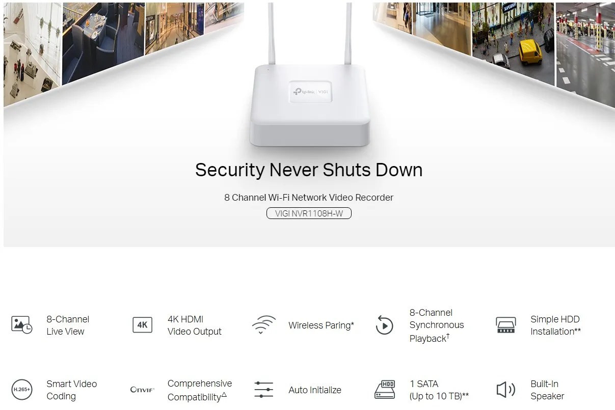 NVR TP-Link VIGI NVR1108H-W 8-канален