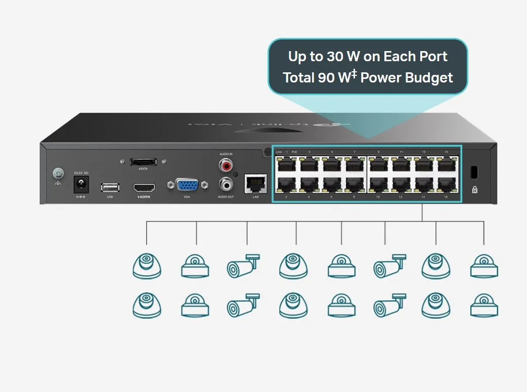 16-канален PoE+ NVR TP-Link VIGI NVR2016H-16P