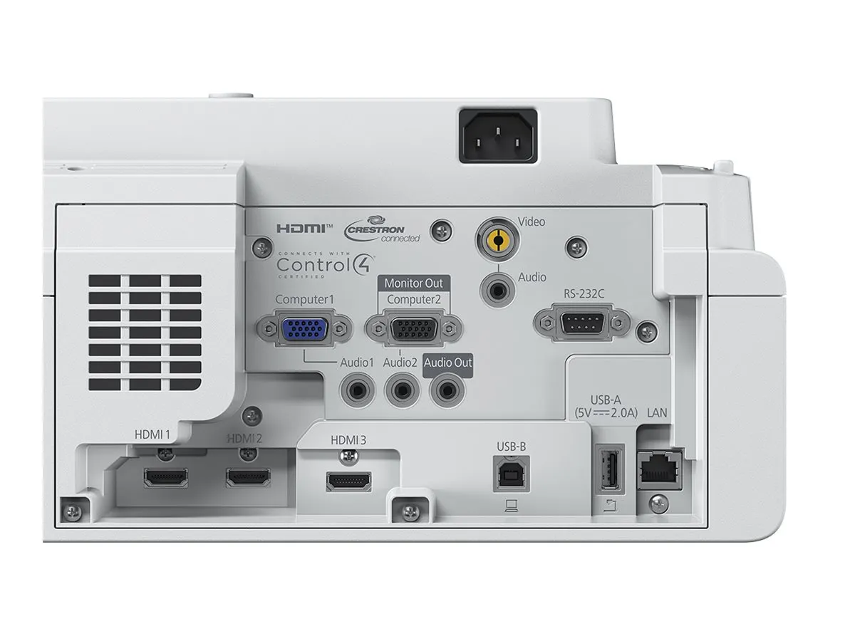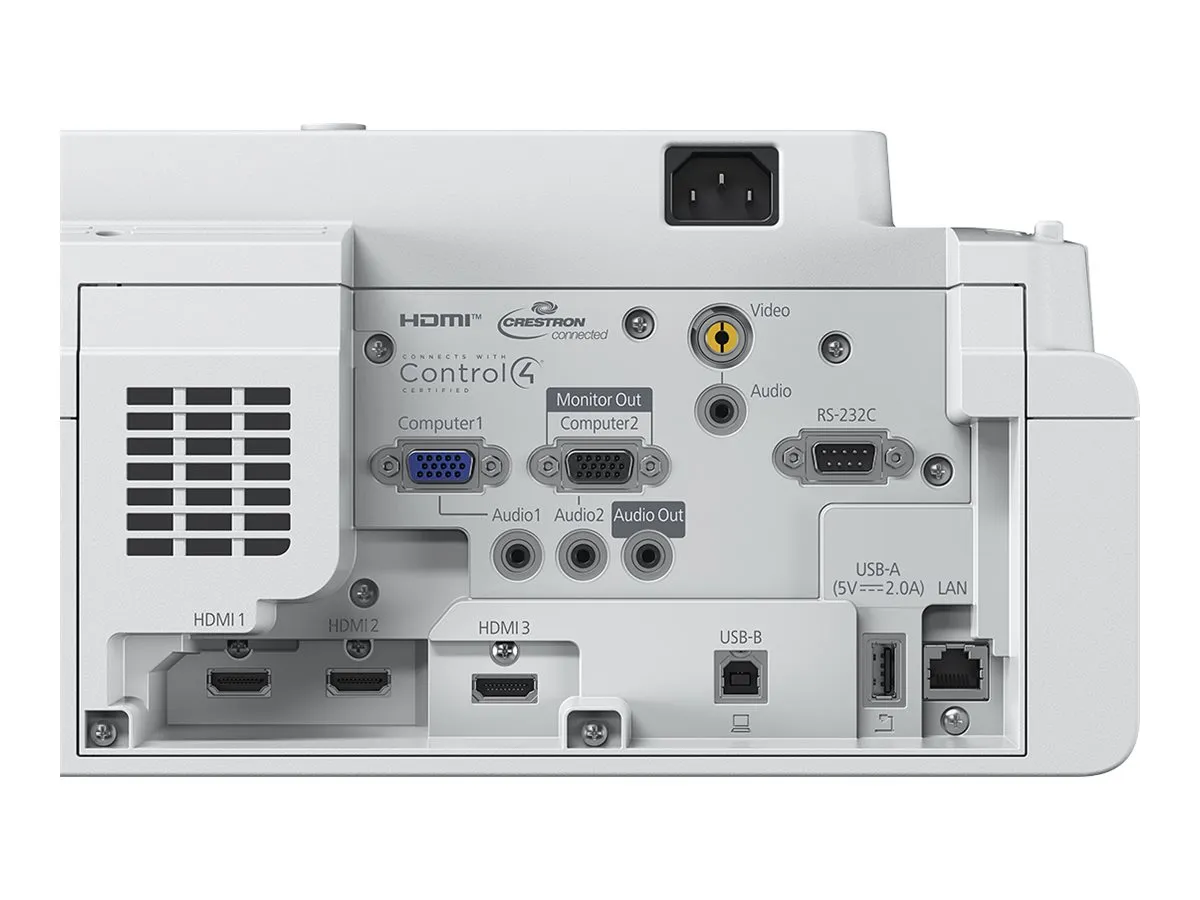 | Features: | EPSON 3LCD technology, RGB liquid crystal shutter, auto power on, Digital Zoom, Direct Power Off, Direct Power On, document camera compatible, EPSON Quick Corner, Blackboard Mode, Cinema Mode, Dynamic Mode, Presentation Mode, Crestron Integrated Partner, Crestron RoomView, Extron IPLink certified, AMX Device Discovery |