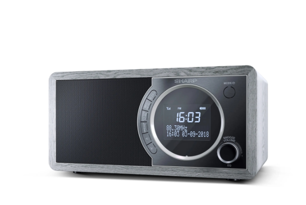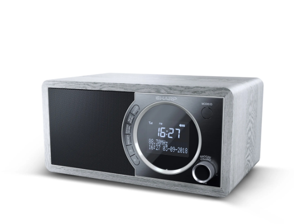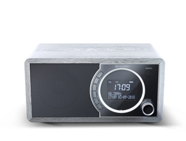 Sharp Radios DR-450(GR), DIGITAL RADIO, Bluetooth 4.2, 6W, 20 DAB+/DAB/FM, Auto time/date, LCD Display, Dual alarm with Sleep and Snooze, Dimmer function, Wooden speaker, Grey - DR-450(GR)