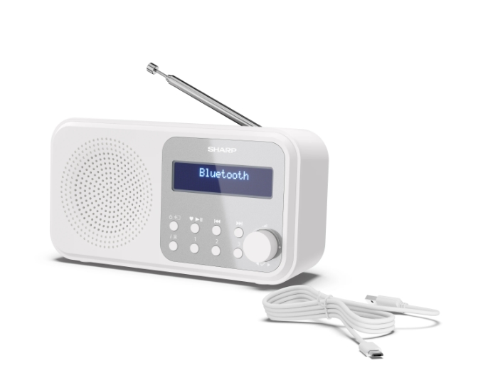 Sharp Radios DR-P420(WH), PORTABLE DIGITAL RADIO, Bluetooth 5.0, 20 DAB+/DAB/FM, Auto time/date, LCD Display, Dual alarm,Micro USB x1 (power supply),3.5mm Headphone jack / line-out, SNOWY WHITE - DR-P420(WH)