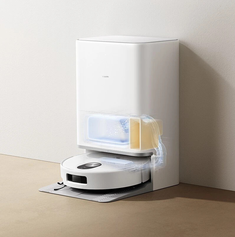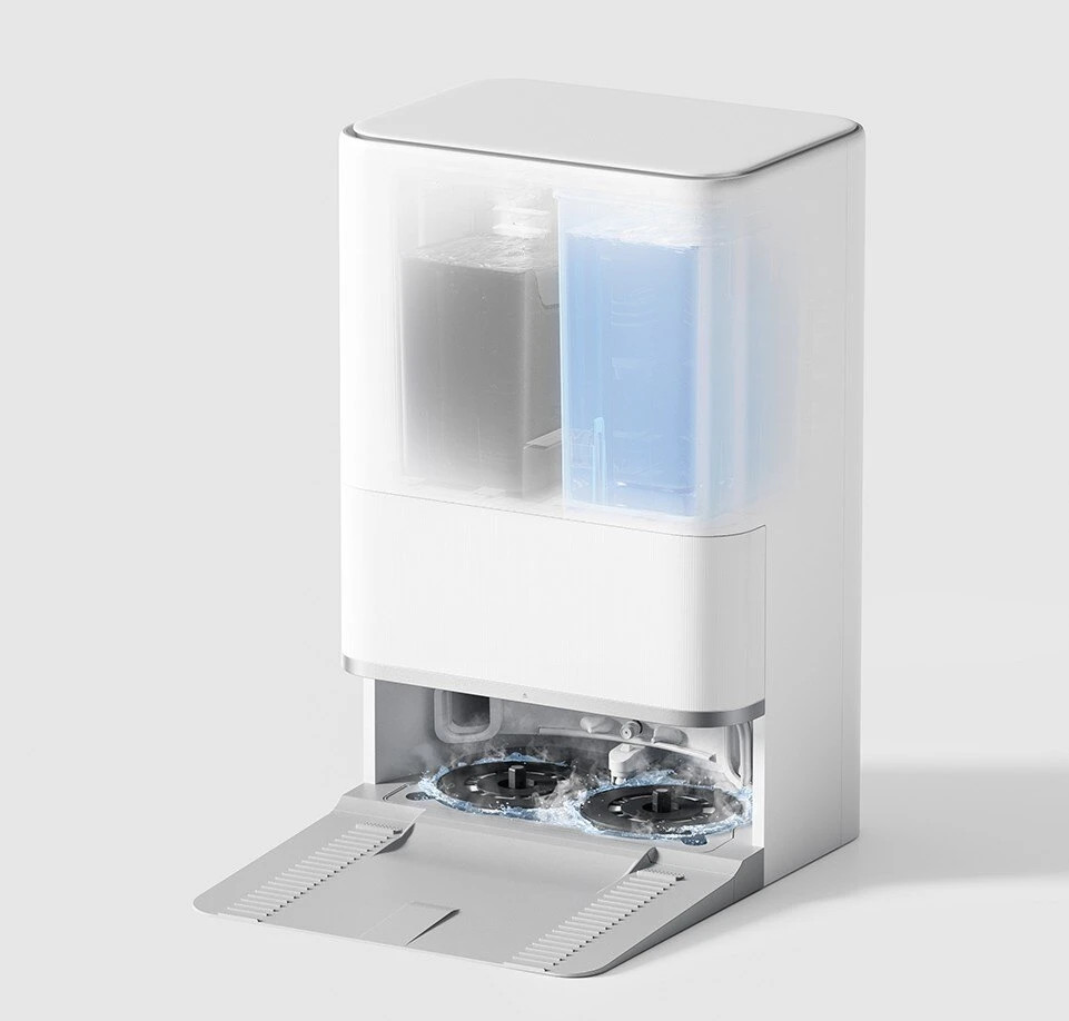 автоматично изпразване на боклука в 2.5л контейнер автоматично изпиране на мопа с 80-градусова вода автоматично изсушаване на мопа с горещ въздух (около 80 градуса) автоматично измиване на основната на станцията 4л резервоар за чиста вода и резервоар за мръсна вода автоматично зареждане на резервоара за вода на прахосмукачката