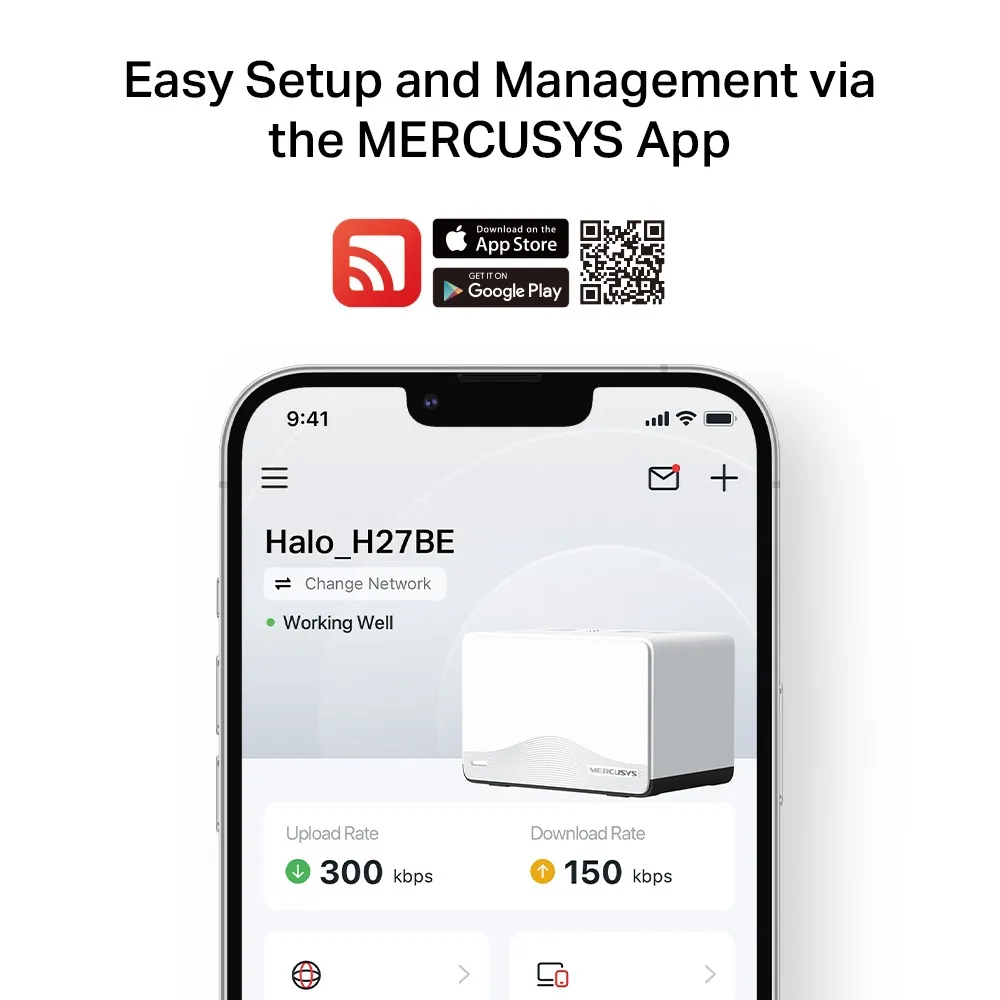 - Лесна настройка и употреба: Управлението на мрежата никога не е било по-лесно с приложението MERCUSYS.