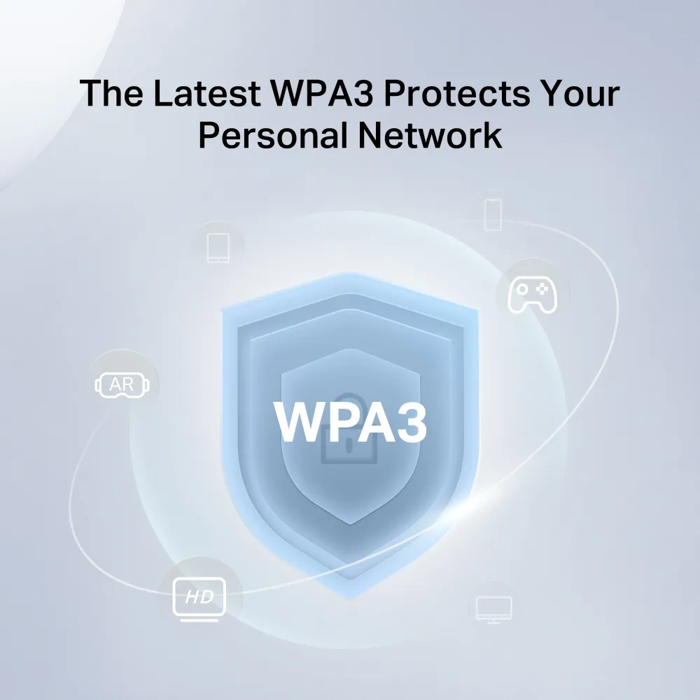 Най-новият стандарт за сигурност, WPA3, предлага подобрена всеобхватна WiFi защита за защита на вашите устройства и лична информация срещу груби атаки.4