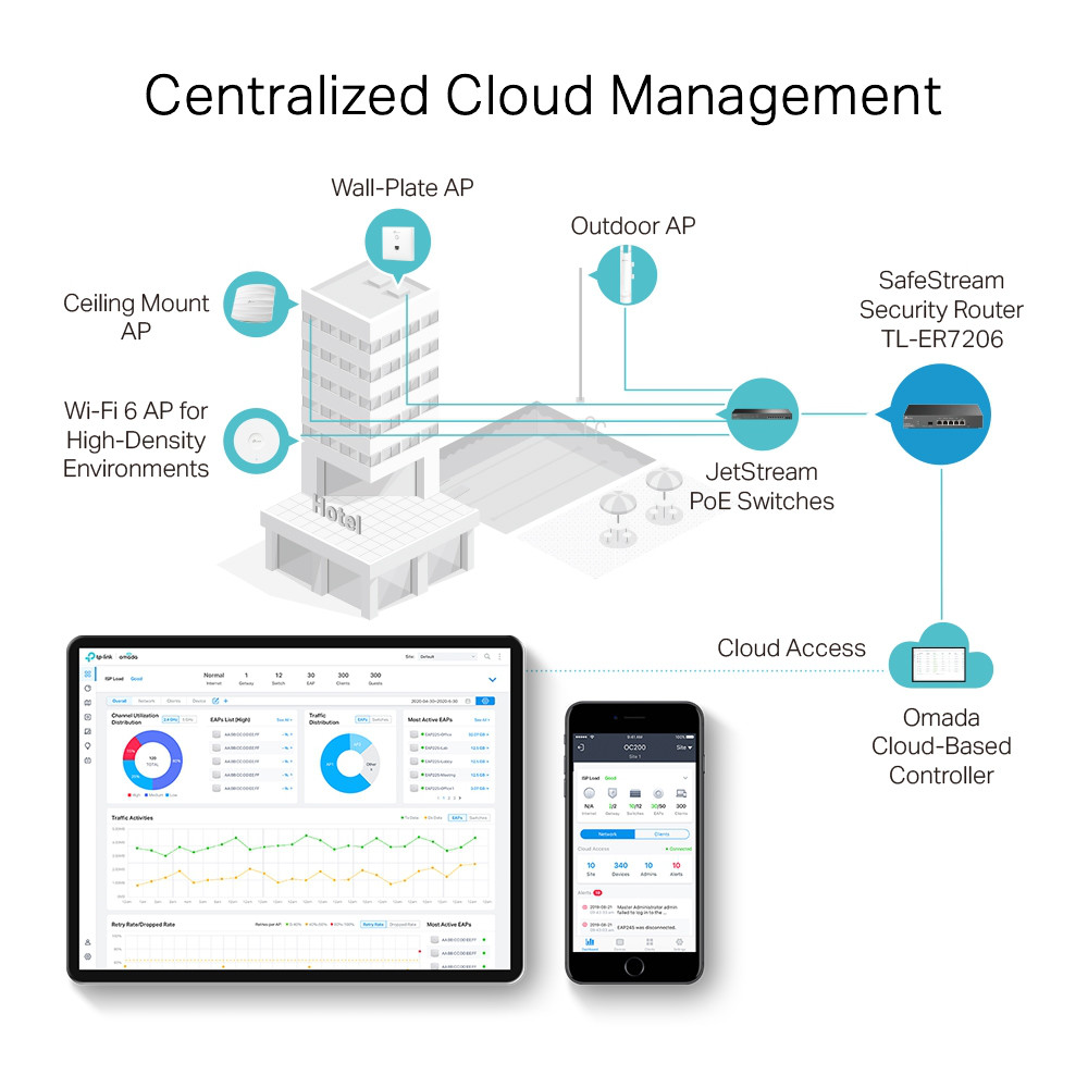 | Софтуерни функции: | Dynamic DNS - DynDns, Comexe, NO-IP Link Backup, Timing, Failover, Online Detection DHCP - Server, Client, DHCP Client List, Address Reservation Intelligent Load Balance IGMP v2/v3 Proxy Guarantee&Limited Bandwidth, Time-scheduled Policy, IP-based Session Limit WAN type: Dynamic IP/Static IP/PPPoE/L2TP/PPTP DHCP: Multi-IP Interfaces, Multi-Net DHCP Virtual Server, DMZ Host, Port Triggering, UPnP FTP/H.323/SIP/IPsec/PPTP ALG Omada App Centralized Management Application Optimized Routing Modify WAN/LAN/DMZ MAC Address ACL: IP/Port/Protocol/Domain Name Filtering |