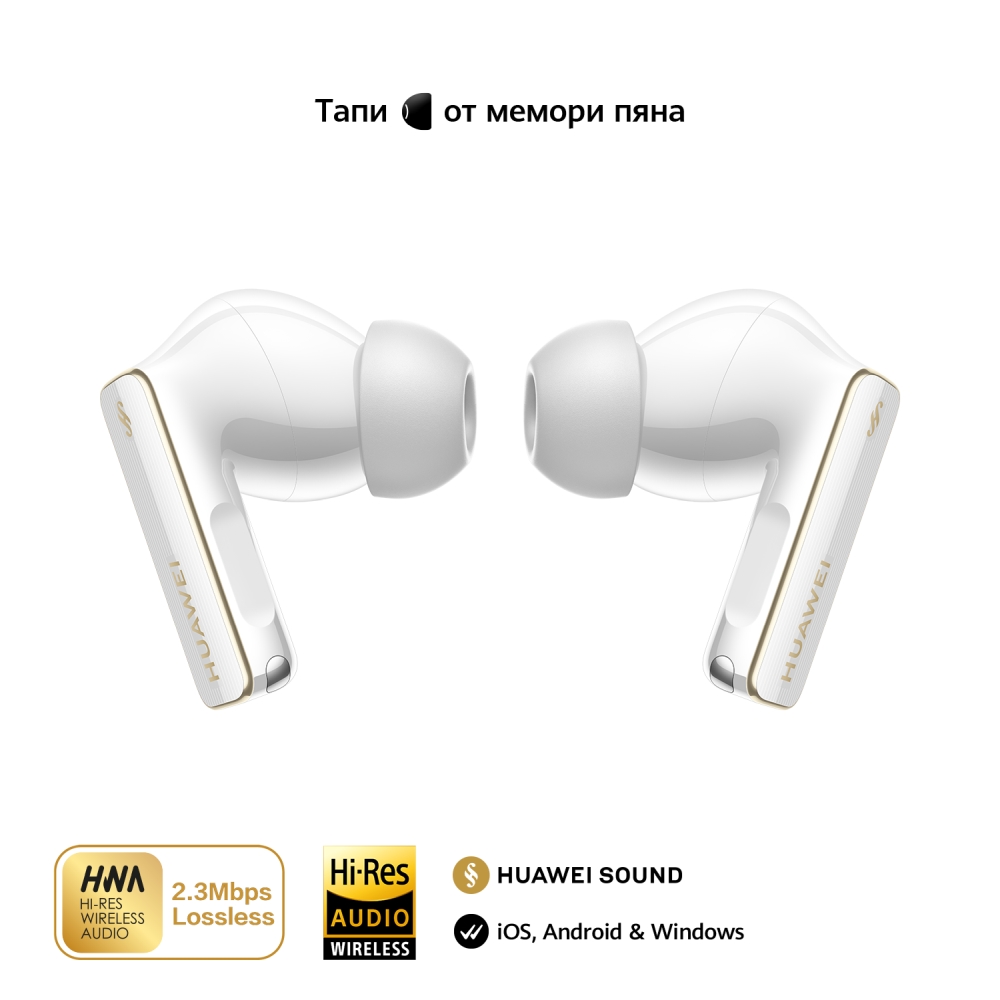 HUAWEI FreeBuds Pro 4са първите слушалкитапи, които поддържат 2.3 Mbpsпредаване без загуби,4 благодарение на специалния L2HC 4.0аудио кодек на Huawei5 и усъвършенстваната технология NearLink.