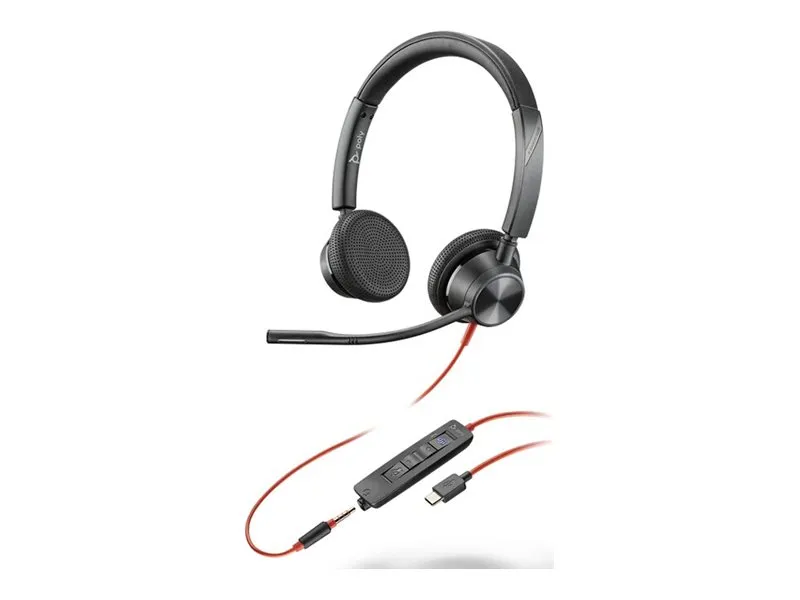 HP Poly Blackwire 3325 Stereo Microsoft Teams Certified USB-C Headset +3.5mm Plug +USB-C/A Adapter - 8X222AA