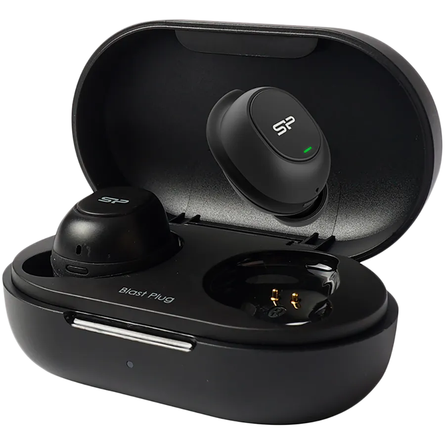 Silicon Power Blast Plug BP80 Earbuds Audio Wireless Headset, Bluetooth 5.0 True Wilreless earbuds, 4.5rs work, 70hrs standby, Bluetooth 5.0, IPX4, magnetic lid charging case, Black - SP5MWASYBP80BT0K