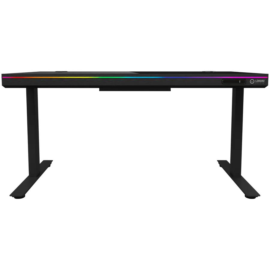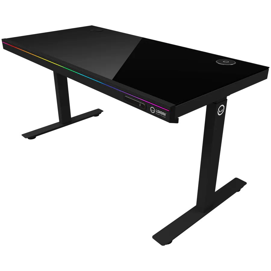 Геймърско бюро Lorgar PRO 80 Tempered glass, Dual-motor sit/stand adjustable-height gaming desk with wireless charger, RGB lighting, control panel, and USB ports, solid tempered glass tabletop, black. - LRG-DP80G