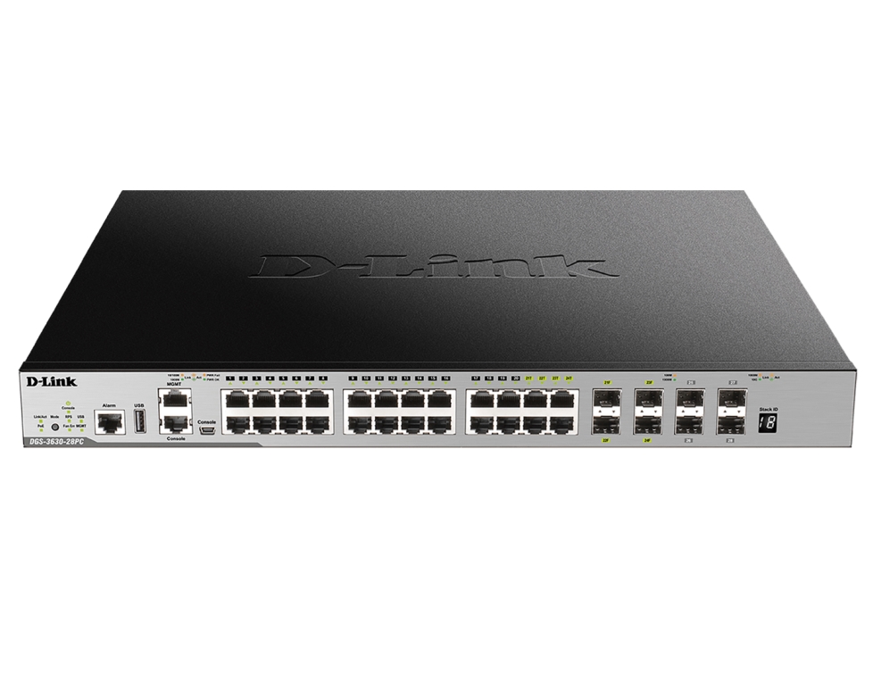 D-Link 20-port GE PoE 370W Layer 3 Stackable Managed Gigabit Switch including 4-port Combo 4-port Combo - DGS-3630-28PC/SI