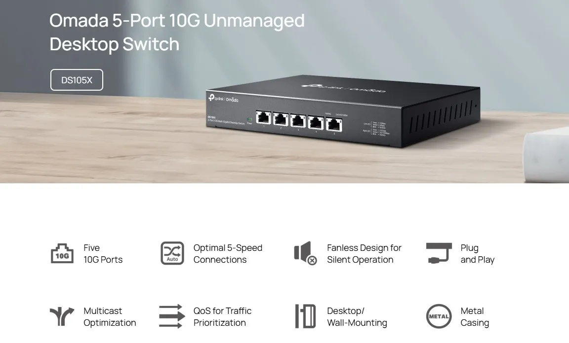 5-портов гигабитов неуправляем настолен комутатор TP-Link Omada DS105X