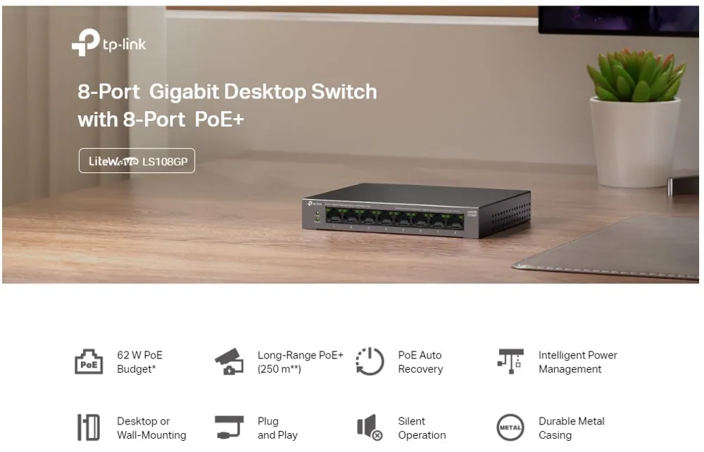 Комутатор TP-Link LS108GP 8-портов PoE+