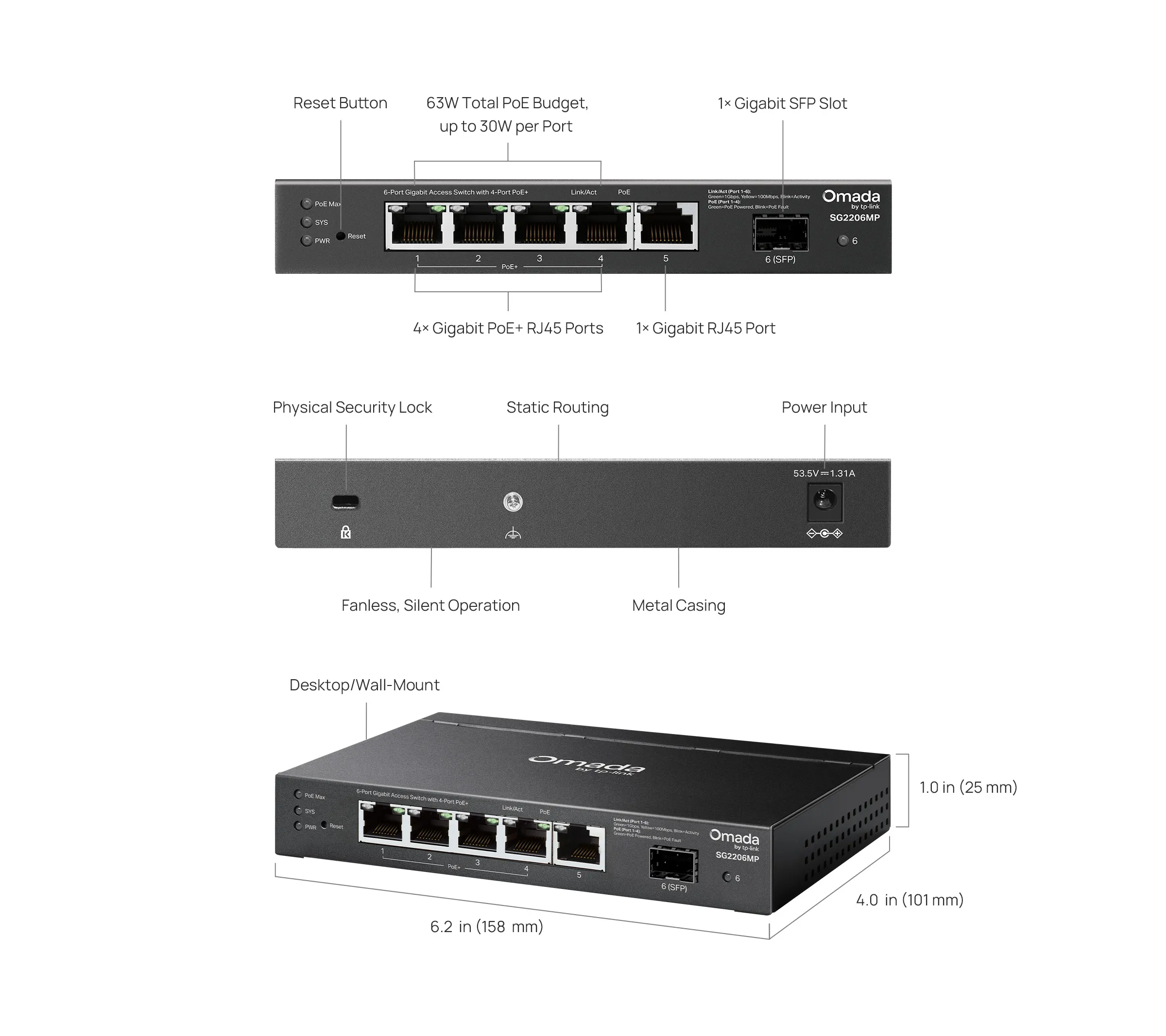 6-портов гигабитов комутатор за достъп с 4 PoE+ порта TP-Link Omada SG2206MP