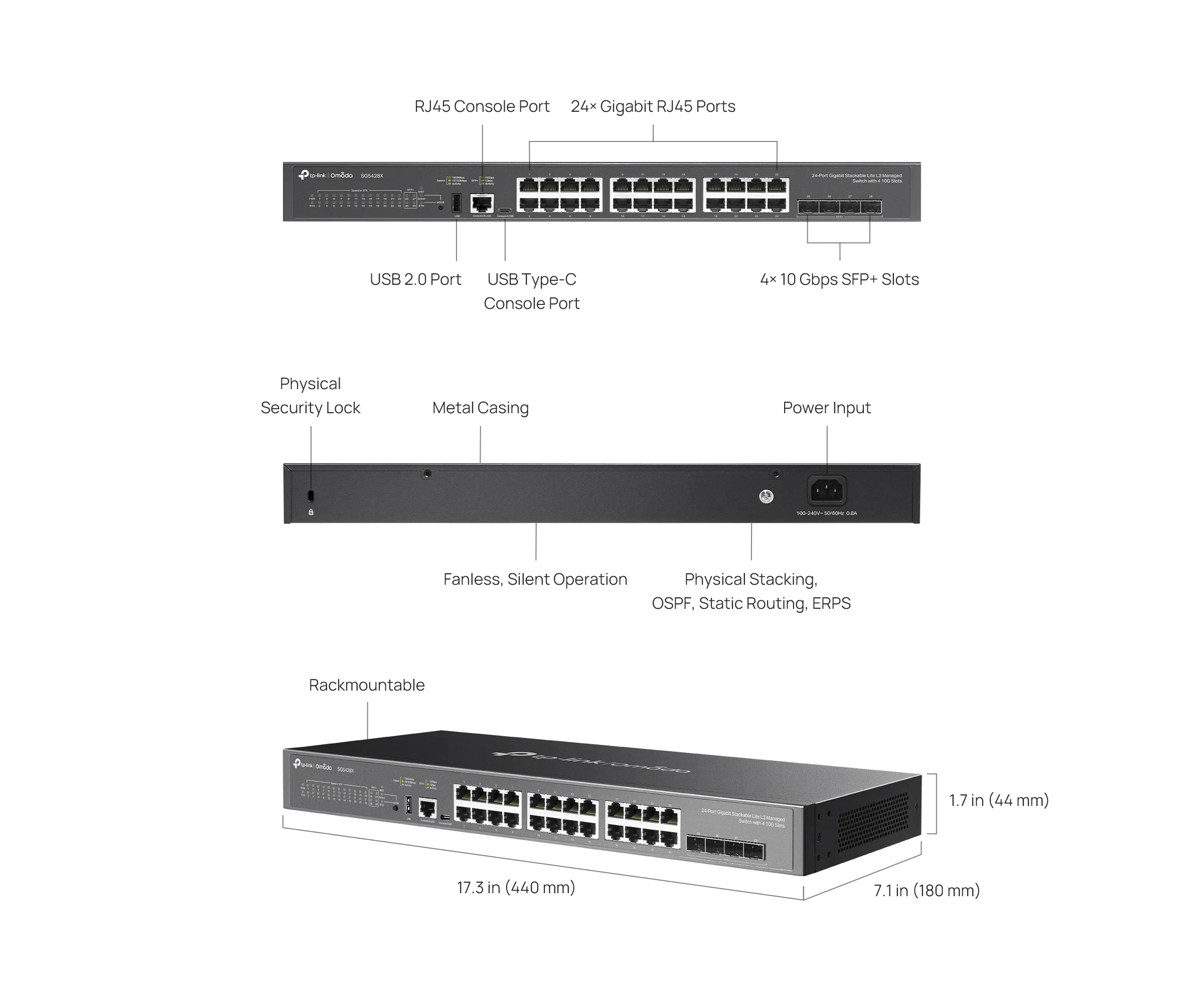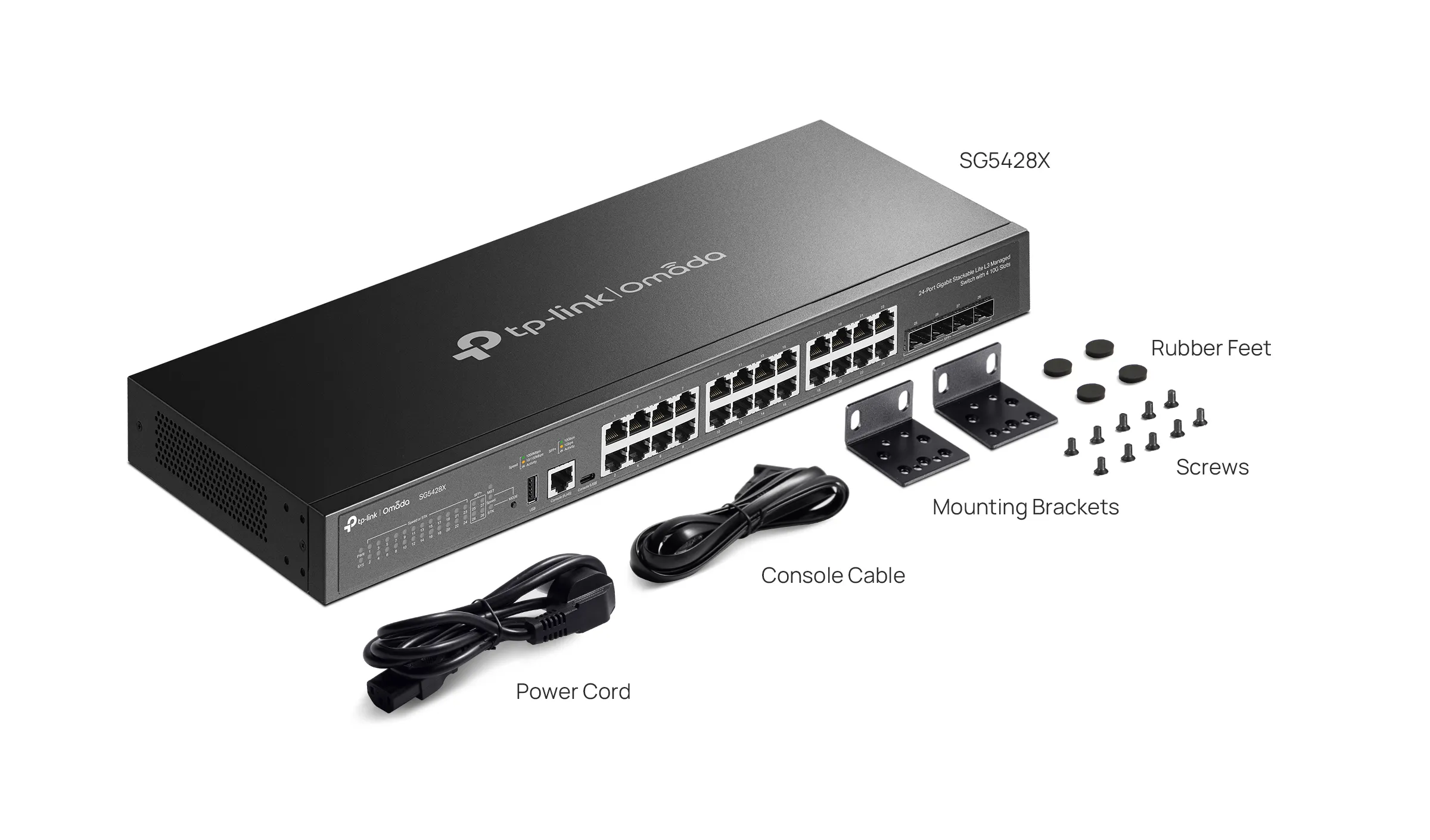 Omada SG5428X е надежден L3 комутатор от начално ниво, пригоден за нивото на достъп, с L3 маршрутизиране, бързи 10 Gbps кабелни скорости и опции за стекиране. Той включва 24× Gigabit RJ45 порта, 4× 10 Gbps SFP+ слота, възможност за физическо стекиране и централизирано управление. Интегриран със силна сигурност и обширни функции за управление, SG5428X предлага надеждно мрежово решение за малки и средни предприятия и интернет доставчици.