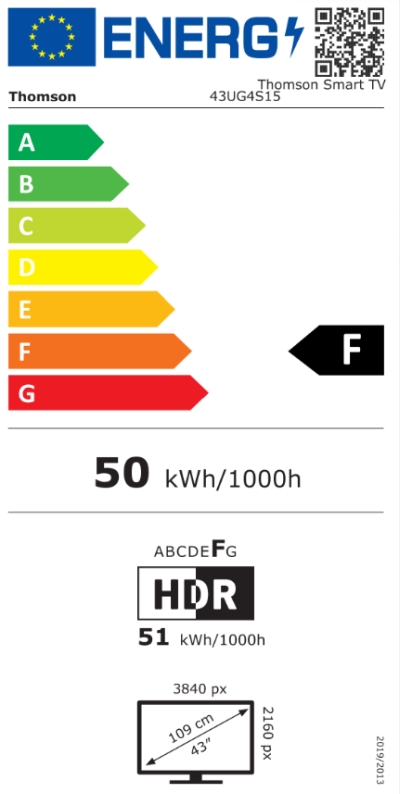 Thomson 43"UHD Google TV; 3840 x 2160 (4K UHD), DLED, 60 Hz, Dolby Audio, Google Cast, DVB-T/T2/C/S/S2, HDR10, Wi-Fi, Bluetooth, LAN, HDMI 3 (2.1), USB 2 (2.0), AV IN, Hotel mode, Side Feet, Black - 43UG4S15