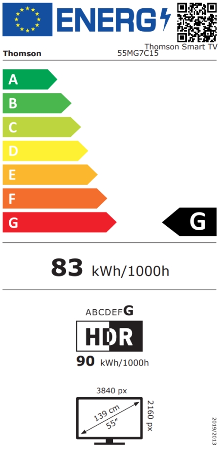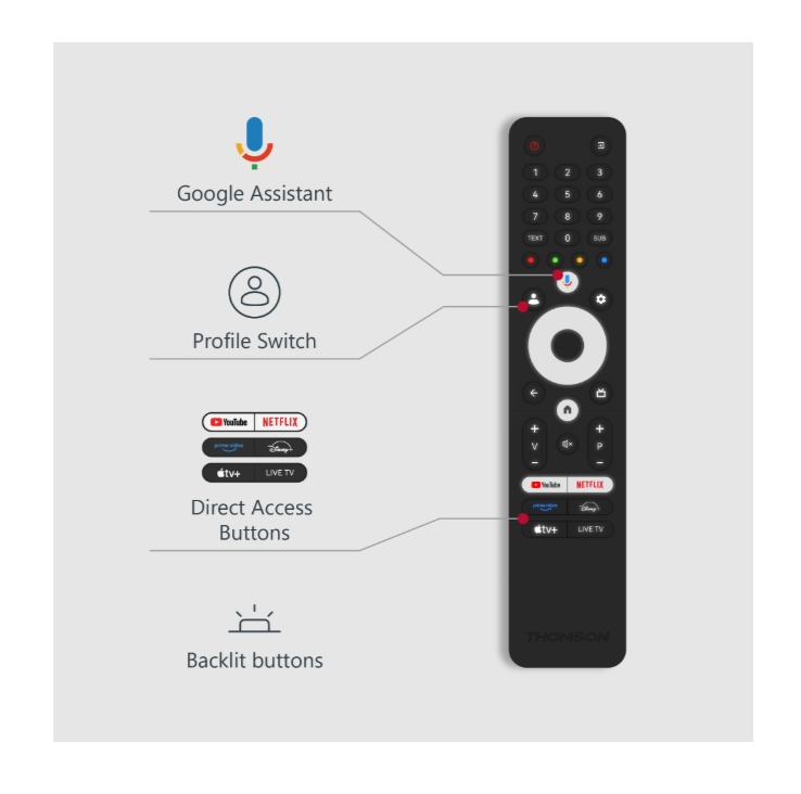 Thomson Smart MiniLED TV 55"; Google TV; 3840 x 2160 (4K UHD), 1500000:1, LED, 144 Hz, DVB-T/T2/C/S/S2, HDR10, Wi-Fi, Bluetooth, LAN, HDMI 4 (2.1), USB 2 (2.0) + 1 (3.0), Central Stand, Black - 55MG7C15