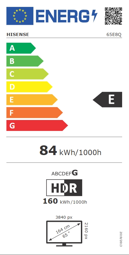 Hisense 65"E8Q, 4K Ultra HD 3840x2160, ULED, Quantum Dot,144 Mhz, HDR 10+, HLG, Dolby Vision, Smart TV,Light Sensor,WiFi Direct, BT, Anyview Cast,Built-in,Subwoofer, 4xHDMI, 2xUSB, LAN, CI+, DVB-T2/C/S2, Black - 65E8Q