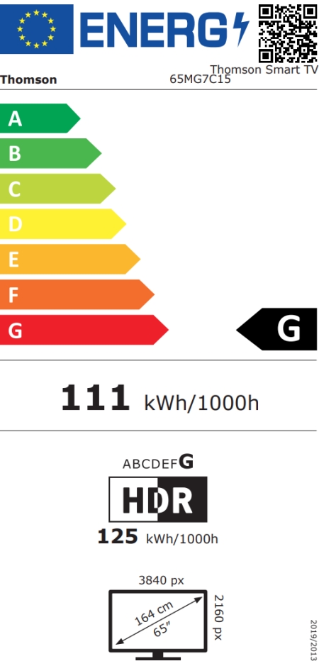 Thomson Smart MiniLED TV 65"; Google TV; 3840 x 2160 (4K UHD), 1500000:1, LED, 144 Hz, DVB-T/T2/C/S/S2, HDR10, Wi-Fi, Bluetooth, LAN, HDMI 4 (2.1), USB 2 (2.0) + 1 (3.0), Central Stand, Black - 65MG7C15