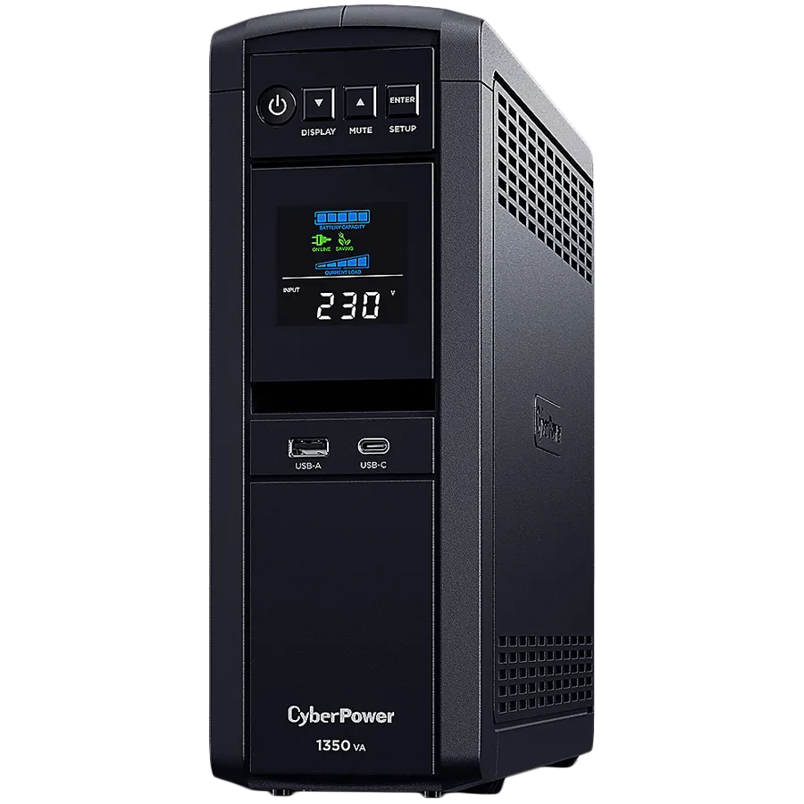 CyberPower UPS AVR,1350VA/810W, Line-Interactive, LCD display, Sine Wave output (for Active PFC ), 6x Schuko, Runtime at 500W ( min ):7, Surge protection; slot SNMP card; CP1350EPFCLCD