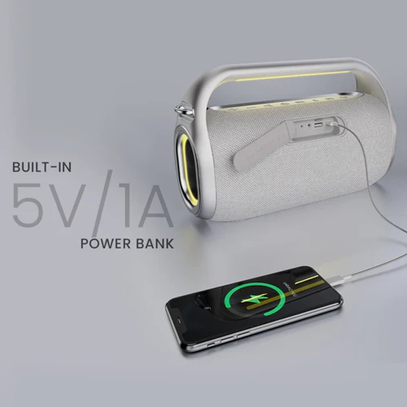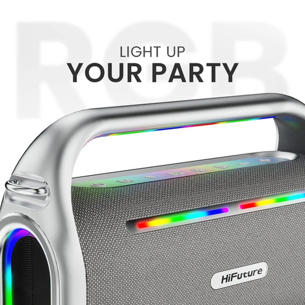 HiFuture MusicBox100 Silver, 20W Output, Karaoke Enable, Two Wireless Microphone, 4000mAh Battery (Support Power Bank), RGB Lighting, Pair to Play (TWS Mode), Bluetooth 5.3 - 6972576181794