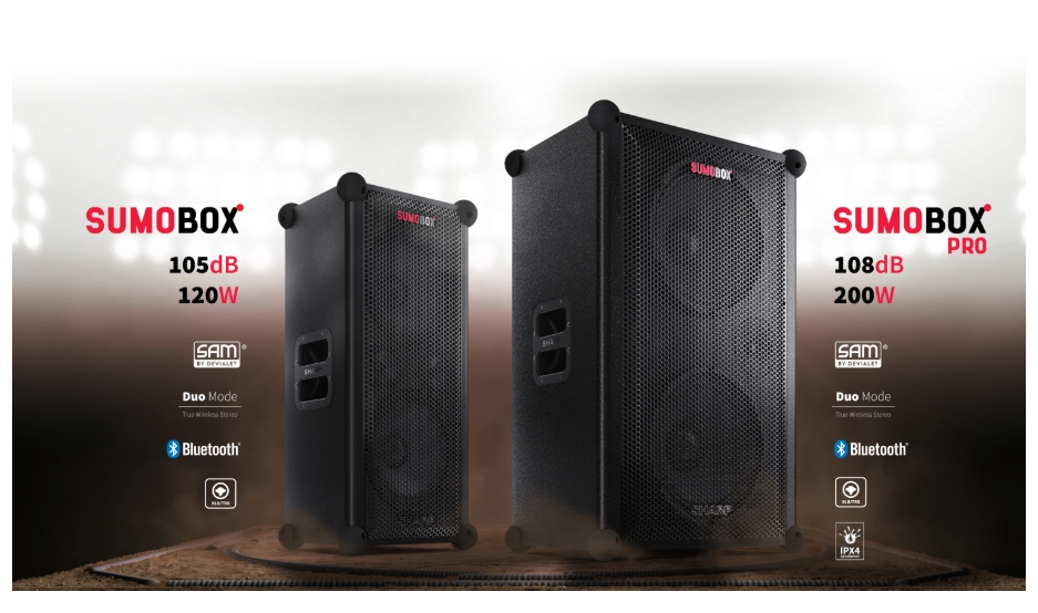 Sharp Speakers CP-LS200, SUMOBOX HIGH PERFORMANCE PORTABLE SPEAKER 200W RMS / 108dB via 2 x 10"woofers + 2 x 3"tweeters, 8 h play time by built in battery, Duo-mode/True Wireless Stereo (TWS), USB x2 (charging only), Bluetooth 5.0, 3.5mm Aux-in / line