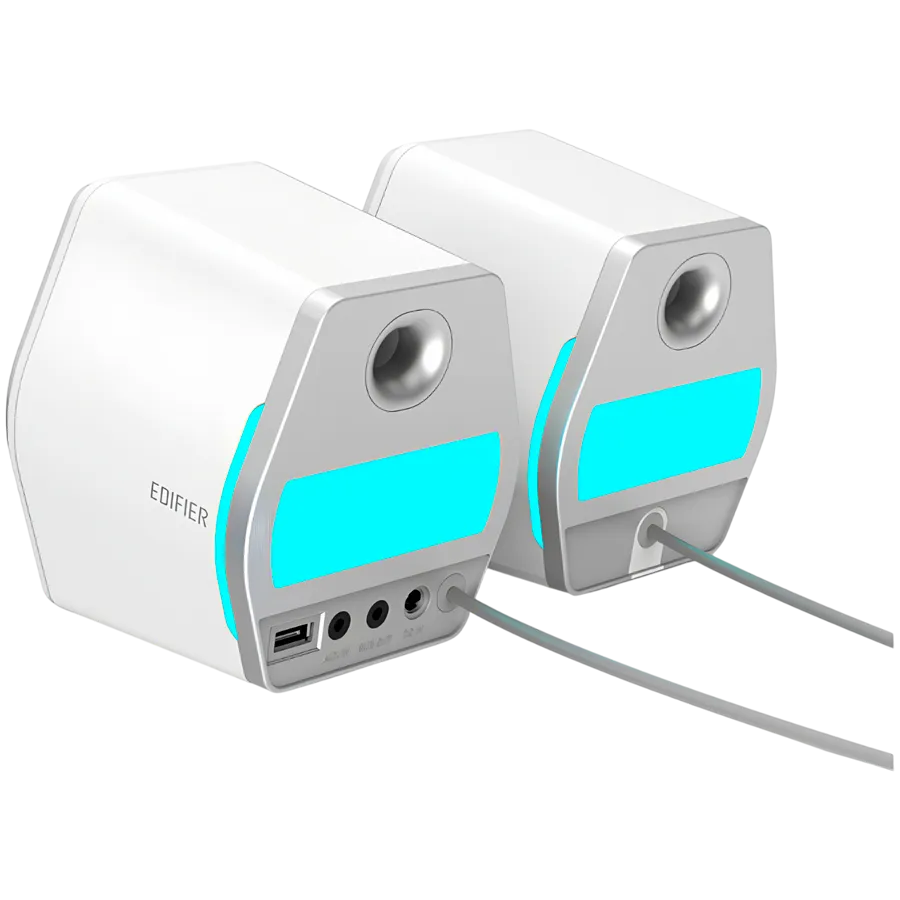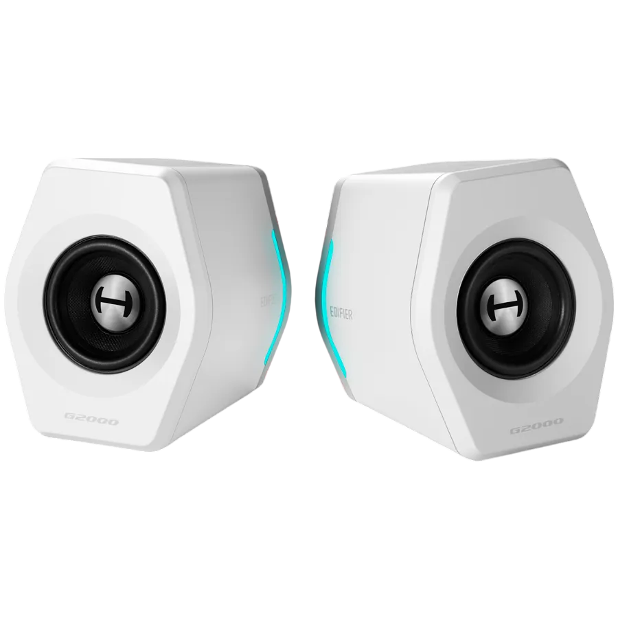Edifier G2000 2.0 Audio System, BT V5.1, USB, AUX, 2.75-inch Drivers, RGB Lighting, 16W (RMS), White - G2000-WH