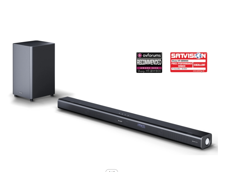 Sharp Soundbar HT-SBW800, 570W 5.1.2 Home Theatre System, DOLBY ATMOS, Wireless Subwoofer, HDMI&BLUETOOTH, wireless music streaming, HDMI ARC/CEC, USB playback, 3.5mm Aux-in, 4K UHD Pass-Through, 3D virtual surround, Digital Optical Audio Input, black