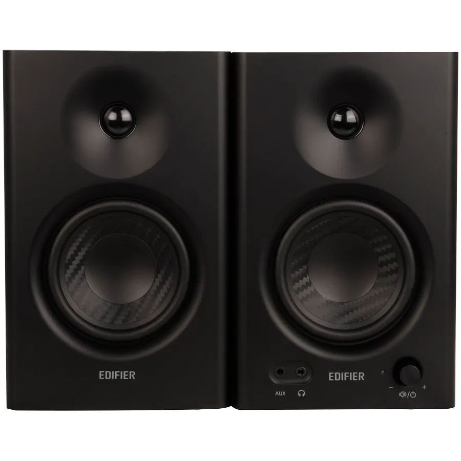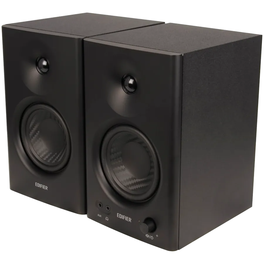 Edifier MR4 Active Studio Monitors, RCA, AUX, TRS, 1-inch Tweeters, 4-inch Woofers, 42W (RMS), Control Knob, Black - MR4-BL