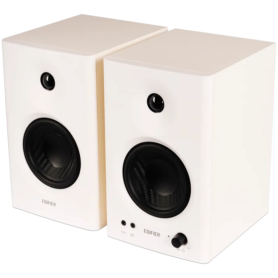 Edifier MR4 Active Studio Monitors, RCA, AUX, TRS, 1-inch Tweeters, 4-inch Woofers, 42W (RMS), Control Knob, White - MR4-WH