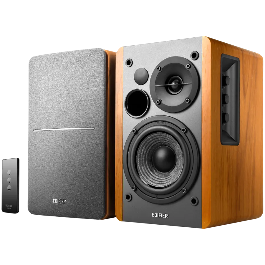 Edifier R1280T 2.0 Bookshelf Speakers, RCA, 0.5-inch Tweeters, 4-inch Drivers, 42W (RMS), Control Knobs and Remote Control, Brown - R1280T-BR