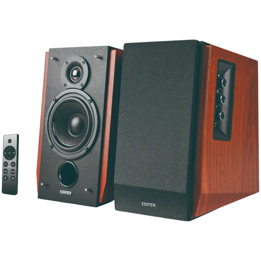 Edifier R1700BTs .0 Bookshelf Speakers, BT V5.1, RCA, 0.75-inch Tweeters, 4-inch Drivers, Sub-Out, 66W (RMS), Control Knobs and Remote Control, Brown - R1700BTS-BR
