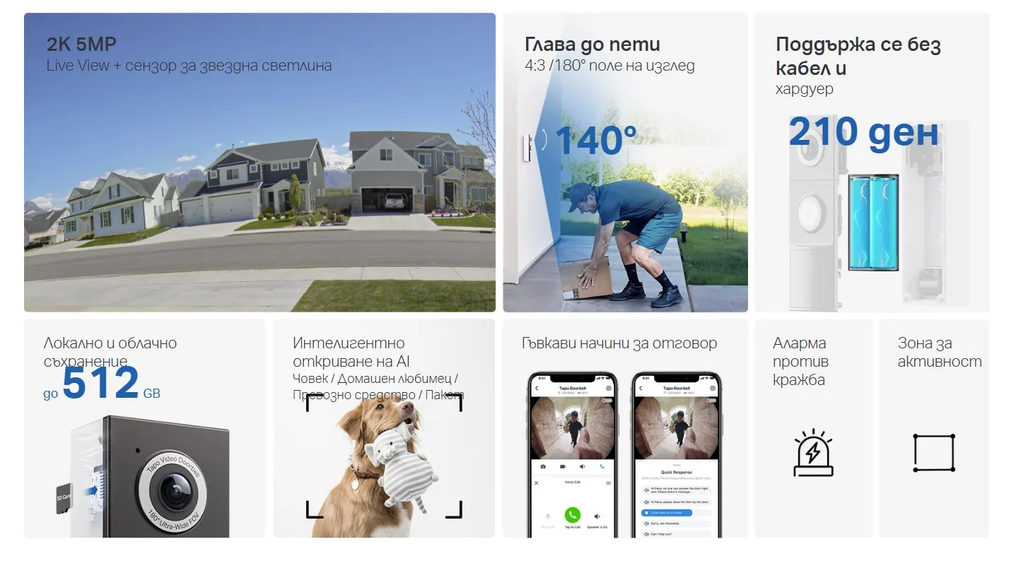 - Локално и облачно съхранение: Поддържа microSD карта (до 512GB) и облачни услуги Tapo Care.