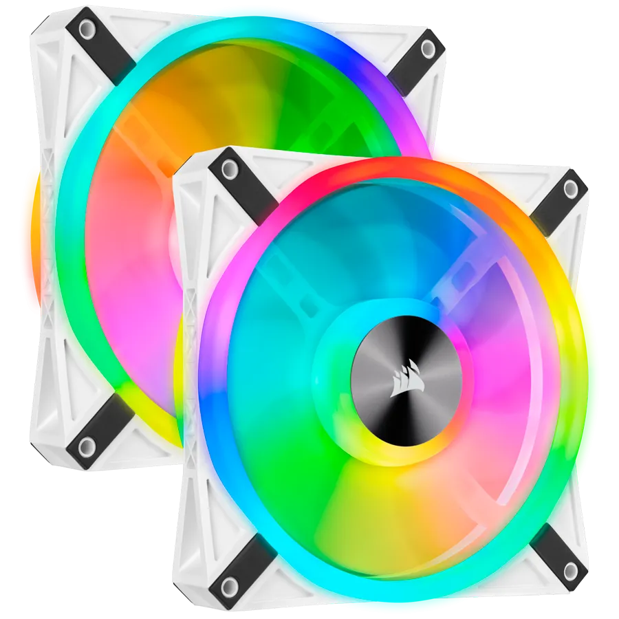 Corsair QL Series, WHITE QL140 RGB, 140mm RGB LED Fan, Dual Pack with Lighting Node CORE - CO-9050106-WW