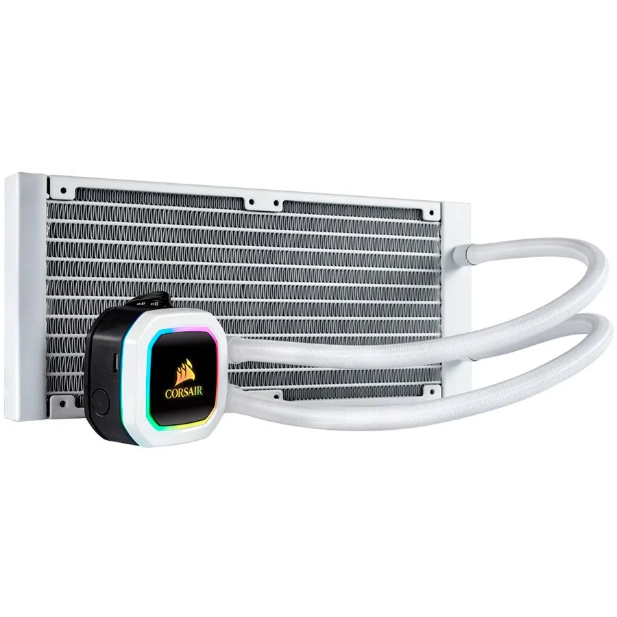Corsair Hydro Series H100i RGB PLATINUM SE 240mm Liquid CPU Cooler, an all-in-one liquid CPU cooler with a 240mm radiator and vivid RGB lighting in brilliant white housing, built for extreme CPU cooling, dual LL120 RGB PWM fans - CW-9060042-WW