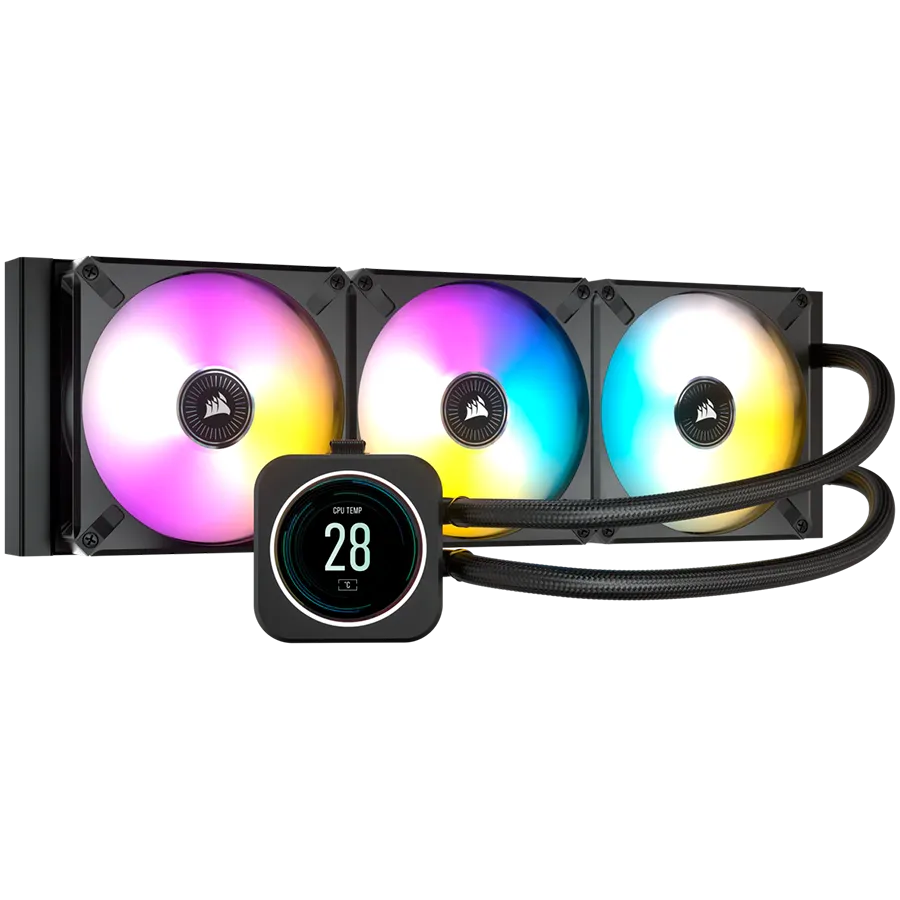 CORSAIR iCUE H150i ELITE LCD Display Liquid CPU Cooler, 360mm Radiator, Triple 120mm ML RGB PWM Fans, Intel: LGA1700/LGA1200/LGA115X/LGA20XX, AMD: AM5/AM4/sTRX4/sTR4, 5Y warranty, black - CW-9060062-WW