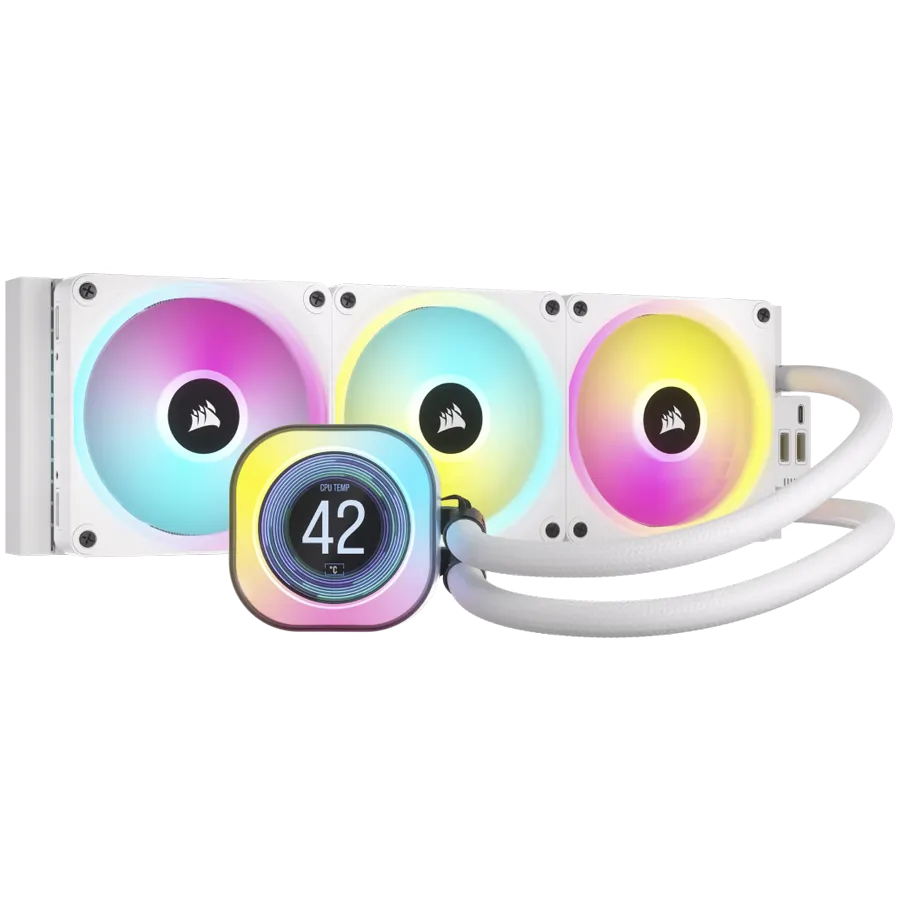 CORSAIR iCUE LINK H150i LCD White AIO, 360mm Radiator, Liquid CPU Cooler, 397mm x 120mm x 27mm radiator - CW-9061010-WW