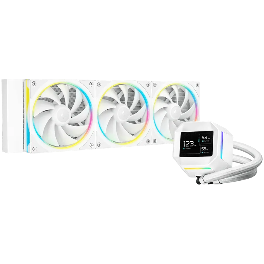 DeepCool LM360 WH, 360mm CPU Liquid Cooler, 2.4" LCD screen, 3x120mm FL12 SE ARGB PWM Fans, Fluid Dynamic Bearing, White, Intel LGA1851/1700/1200/1151/1150/1155, AMD AM5/AM4, R-LM360-WHDMMC-1, 3Y - LM360_WH