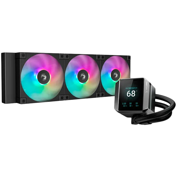 DeepCool MYSTIQUE 360 ARGB, 360mm CPU Liquid Cooler, 2.8" LCD screen, 3x120mm ARGB PWM Fans, Addressable RGB LED, Fluid Dynamic Bearing, Black, Intel LGA1851/1700/1200/1151/1150/1155, AMD AM5/AM4, R-LX750-BKADSNC-G-1 - MYSTIQUE_360_ARGB