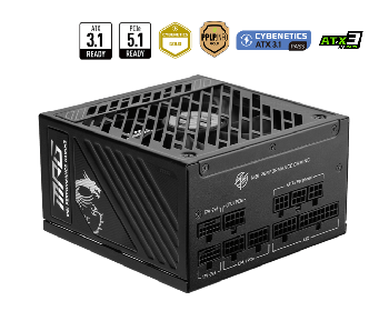 MSI MPG A1000GS PCIE5 Power Supply 1000W, 80 PLUS Gold, Dual PCIe 5.1 Cables, ATX 3.1, 135mm Fan, Fan Stop, OCP/OTP/OPP/SCP/OVP/UVP/SIP/NLO, Active PFC, Dimensions: 150mmx150mmx86mm, 10Y Warranty - MPG_A1000GS_PCIE5