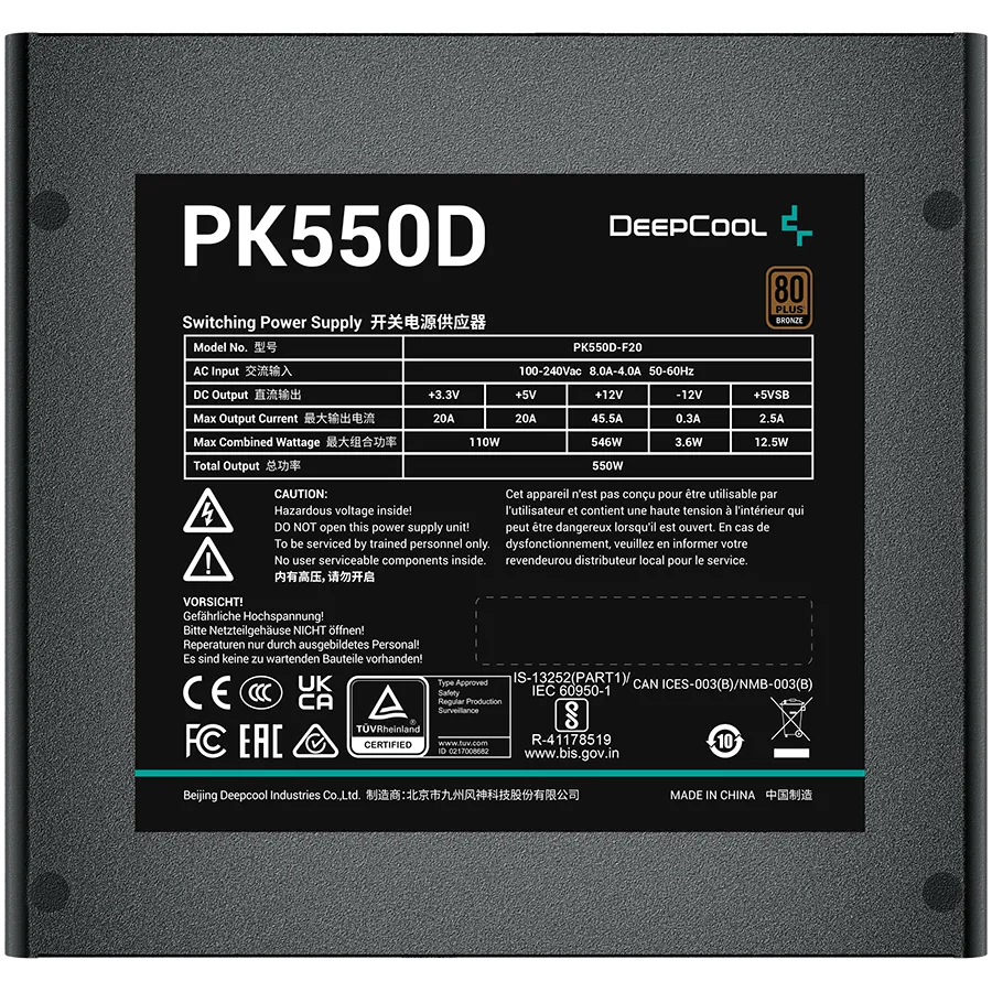 DeepCool PK550D, 550W, 80 Plus BRONZE, Taiwanese Capacitors, Flat Black Cables, 120mm Fan, SCP/OPP/OTP/OVP/OCP/UVP, 5Y, R-PK550D-FA0B-EU